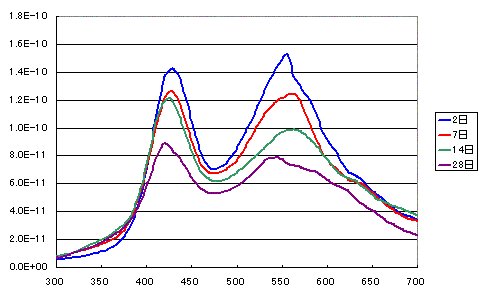 2.試料調整後、2日、7日、14日、28日経過したSiチップを昇温脱離実験(昇温速度=60K/sec)します。