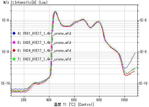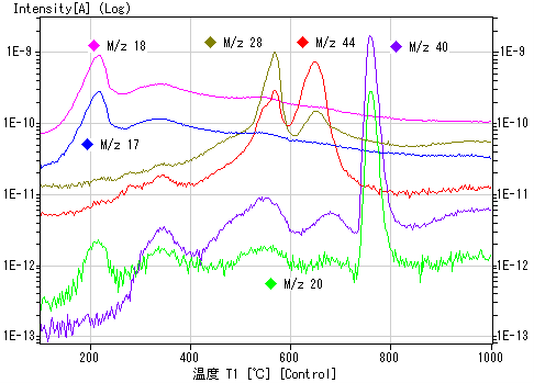 注:ピークが出現する温度は各種条件に依存するので装置によって多少の差異が生じます。