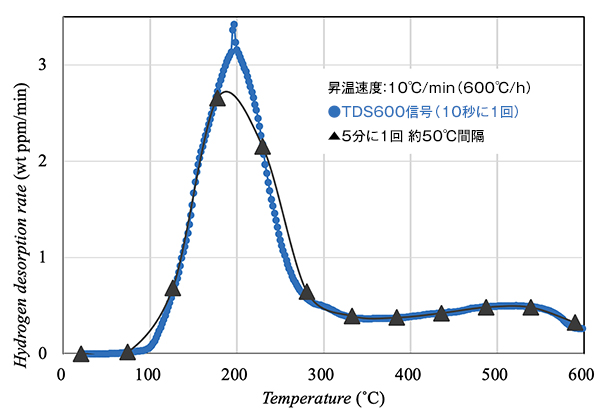 TDS600では水素脱離ピークを正確に捉えることが可能です。
