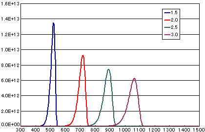 これらの式から計算したシミュレーションデータを以下に示します。
