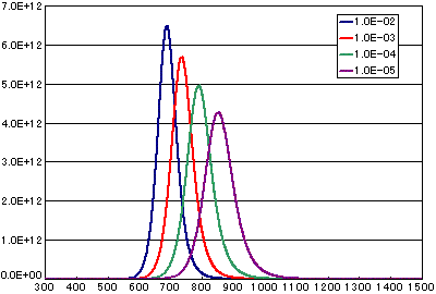 | 頻度因子 (cm2/molesc.sec) | 1E-2 | 1E-3 | 1E-4 | 1E-5 |