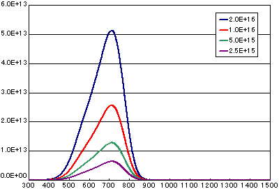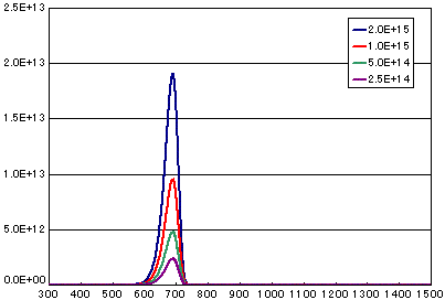 | 初期分子の数(molecs./cm2) | 2E15 | 1E15 | 5E14 | 2.5E14 |